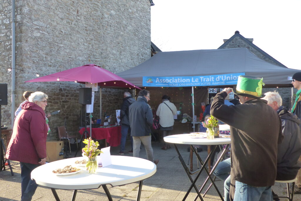 Le trait d’union: pâte au blé, pâte au sarrasin, farine de blé, farine de sarrasin, huile de colza, œufs, jus de pommes, cidre, miel, pain, yaourt, fromage, lait, beurre,…